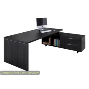 Scrivania direzionale Nera + mobile di servizio – Artexport Flora – Nero venato – 195x170x74 cm