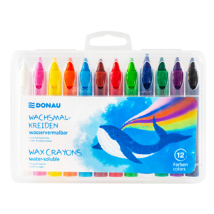 Pastelli a cera Donau in conf. trasparente appendibile – colori assortiti – 322300 (conf.12)