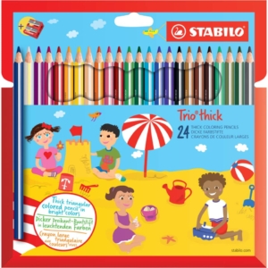 Matite colorate ergonomiche Stabilo Trio thick – Ømina 4,2 mm – Colori Assortiti Astuccio da 24 + temperino