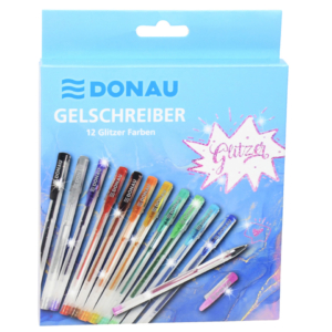 Penne a gel con glitter Donau 1 mm – colori assortiti – 322143 (conf.12)