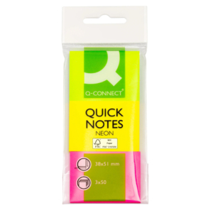 Foglietti riposizionabili Q-Connect Neon assortiti 38x51mm blister 3 blocchetti da 50 – KF01224