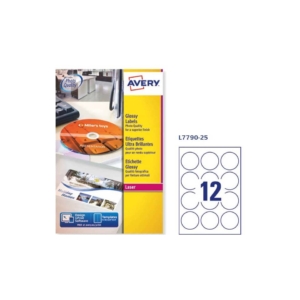 Etichette Bianche lucide AVERY Ø60 mm – – stampanti laser – L7790-25 (conf.25 fogli)