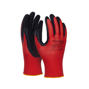 Guanti da lavoro Donau Safety in poliestere rosso e lattice ruvido nero sul palmo Tg. 9 – 32021121-09 (conf.12)