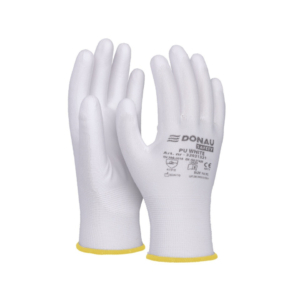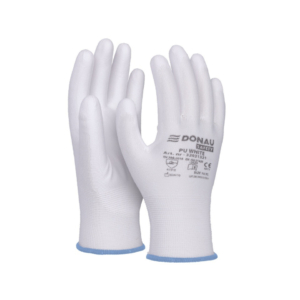 Guanti da lavoro Donau Safety in poliestere e spalmati di PU bianco sul palmo – Tg. 8 – 32031321-08 (conf.12)