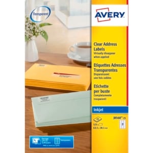 Etichette Trasparenti QuickPEEL™ Avery in poliestere – Ink-jet – 63,5×38,1 mm – 21 etichette per foglio – J8560-25 (conf.25 fogli)