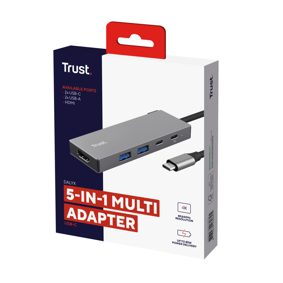 Adattatore USB-C multiporta Trust Dalix in alluminio 5-in-1 26062