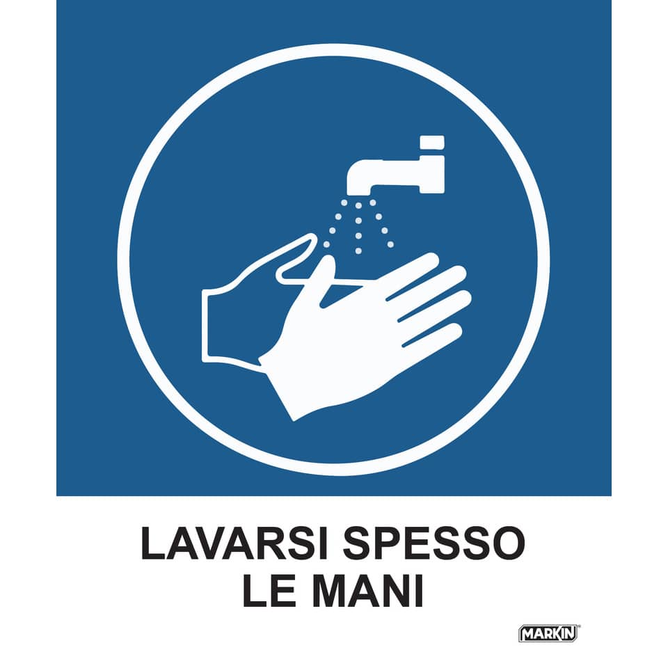 Adesivi segnaletici Markin “Lavarsi spesso le mani” in LWM – 12,5×15,2 cm – X110COV-3 (conf.2)