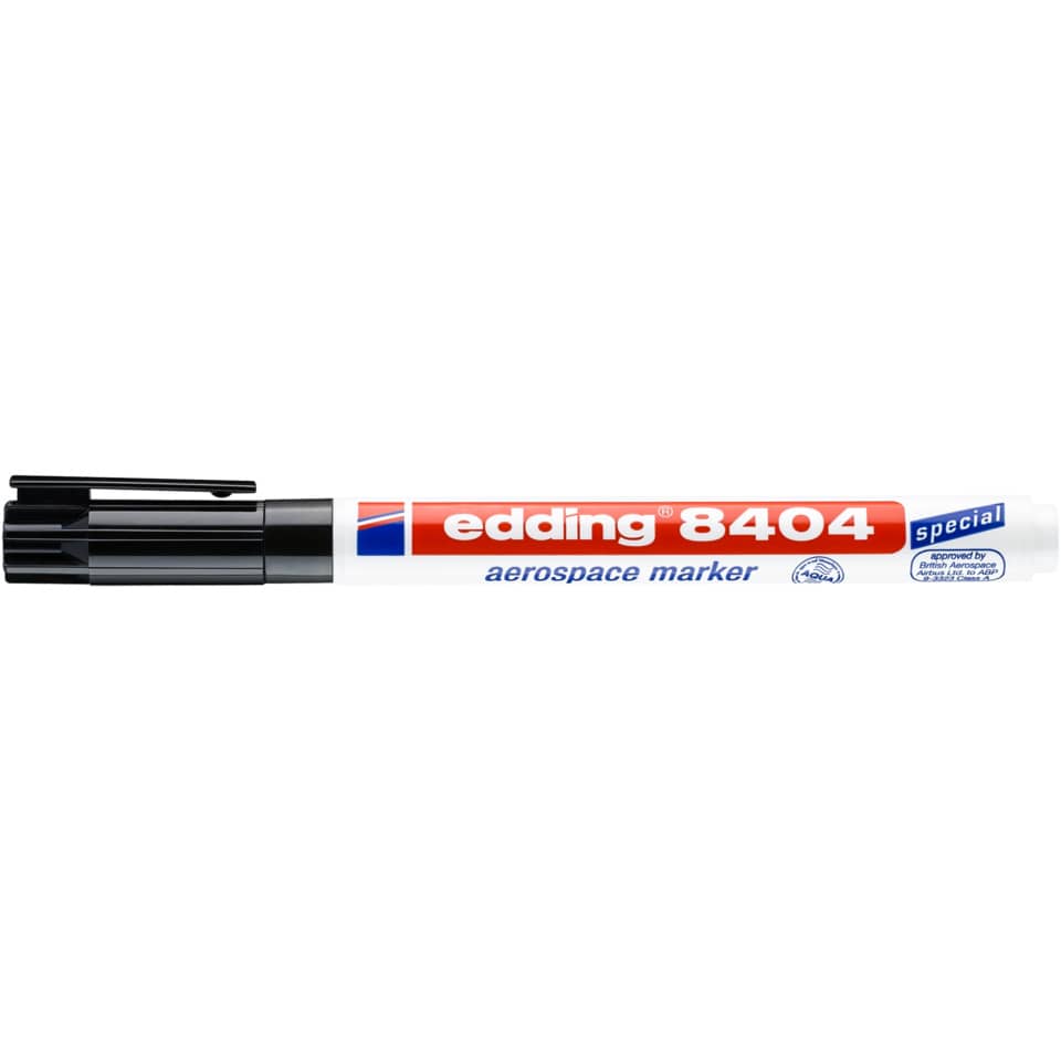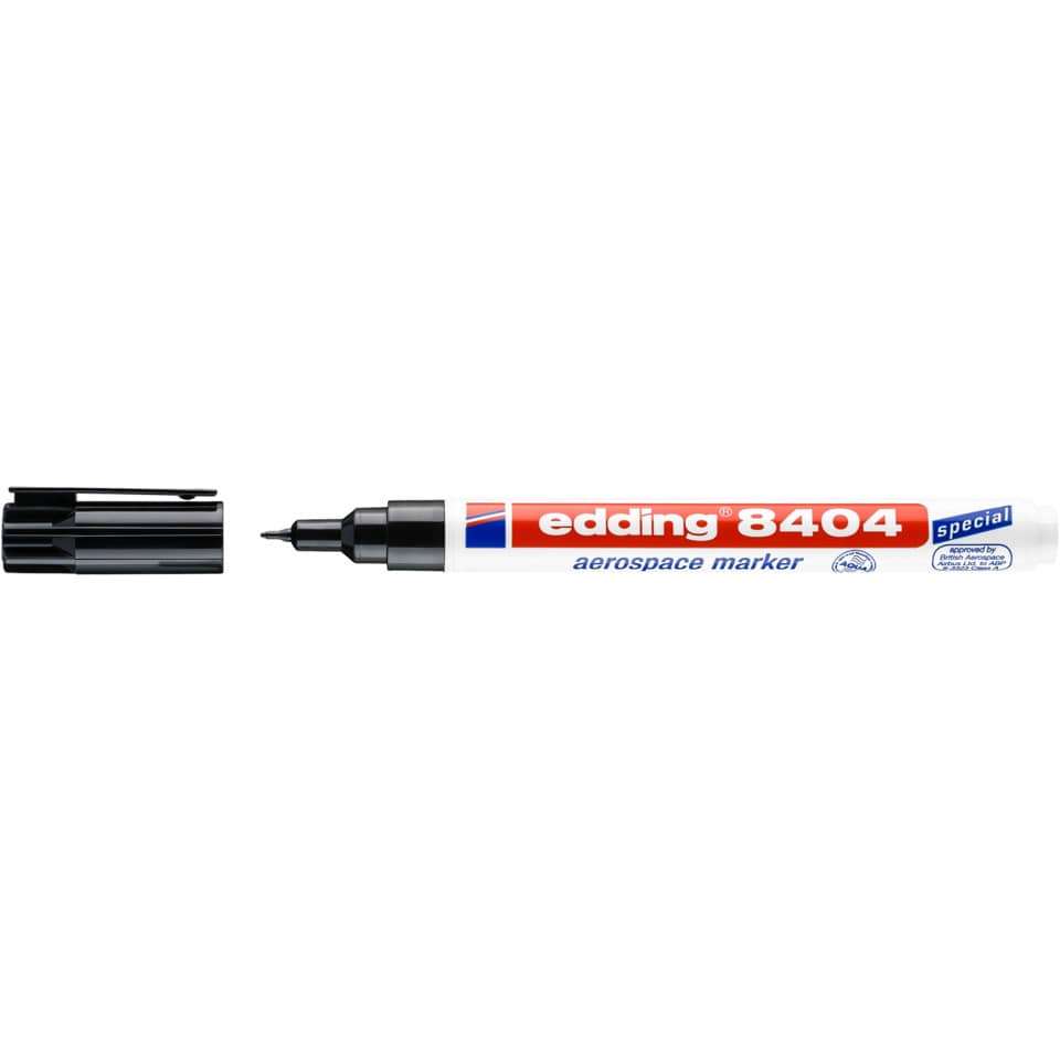 Aerospace marker per la marcatura permanente, a bassa corrosione e contenuto di alogeno, di quasi tutti i materiali come plastica, metallo e gomma. La punta tonda ha un tratto di 0,75 mm. L'inchiostro pigmentato a base d'acqua dell'Aerospace marker è permanente, resistente alla luce, ad asciugatura rapida, impermeabile e resistente allo sfregamento ed è anche resistente a un'ampia gamma di solventi e vernici. Senza aggiunta di xylene o toluene.