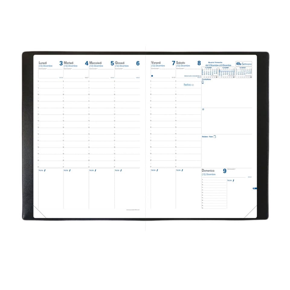 Agenda settimanale 2026 Quo Vadis Prenote Club 21x29,7 cm roso. Rilegatura cucita, grana effetto due toni, 160 pagine, carta bianca. Griglia 13 mesi : Dicembre-Dicembre, stampa bicolore grigio/blu, Copertina amovibile.