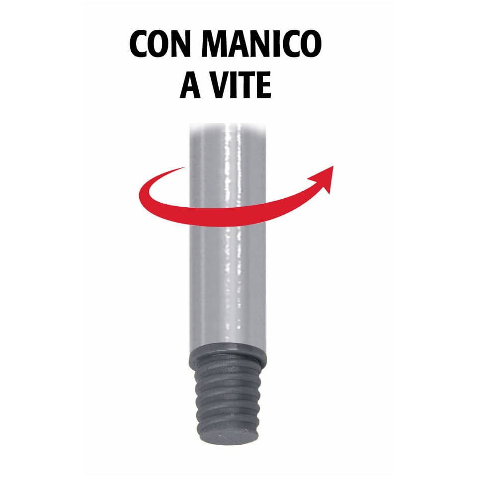 alzaimmondizia in polipropilene con manico in metallo plastificato a vite.