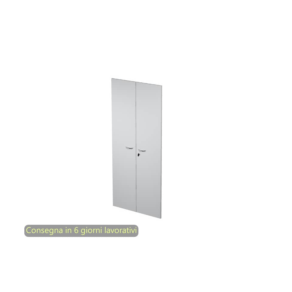 Coppia di ante in melaminico per mobile alto dotate di serratura, colore grigio. Dimensioni 80 x 175h sp. 18mm. Arredamento per uffici operativi dal design moderno e lineare. Materiale bilaminato melaminico conforme alle norme UNI e EN classe E1. Piani antigraffio e antiriflesso. Maniglie in materiale antiurto. Mobili a giorno (struttura e ripiani riposizionabili sp. 18 mm, top sp. 22 mm) completabili con ante battenti (sp. 18 mm) disponibili in tre versioni: bassi, medi e alti. I mobili sono rifiniti sul retro e possono essere utilizzati come pareti divisorie. Codice produttore: 60075M-9