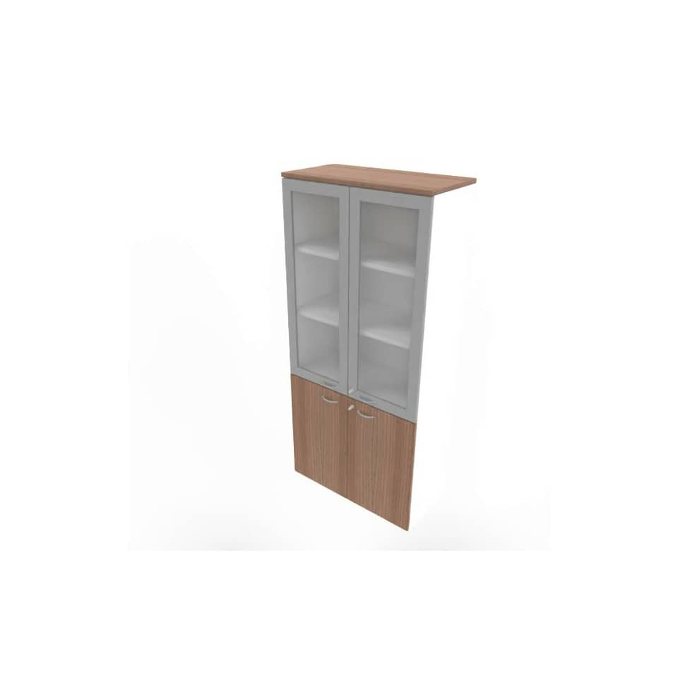 Armadio alto ante basse Noce canaletto e alte in vetro telaio MDF scocca Bianca 90x45xh.200 cm – ECE490T-NO-BA-V3
