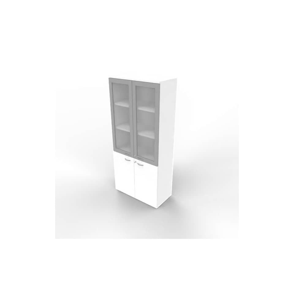 Armadio alto con ante basse Bianche e alte in vetro telaio MDF scocca Bianca 90x45xh.200 cm – ECE490T-BA-BA-V3