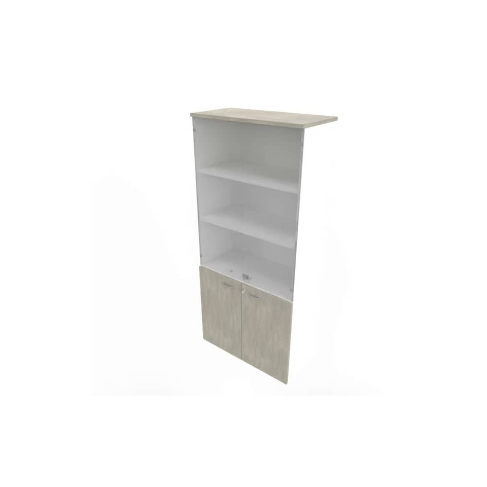 Armadio alto con ante basse cemento e alte in vetro scocca Bianca 90x45xh.200 cm Practika – ECE490V-CL-BA-GE
