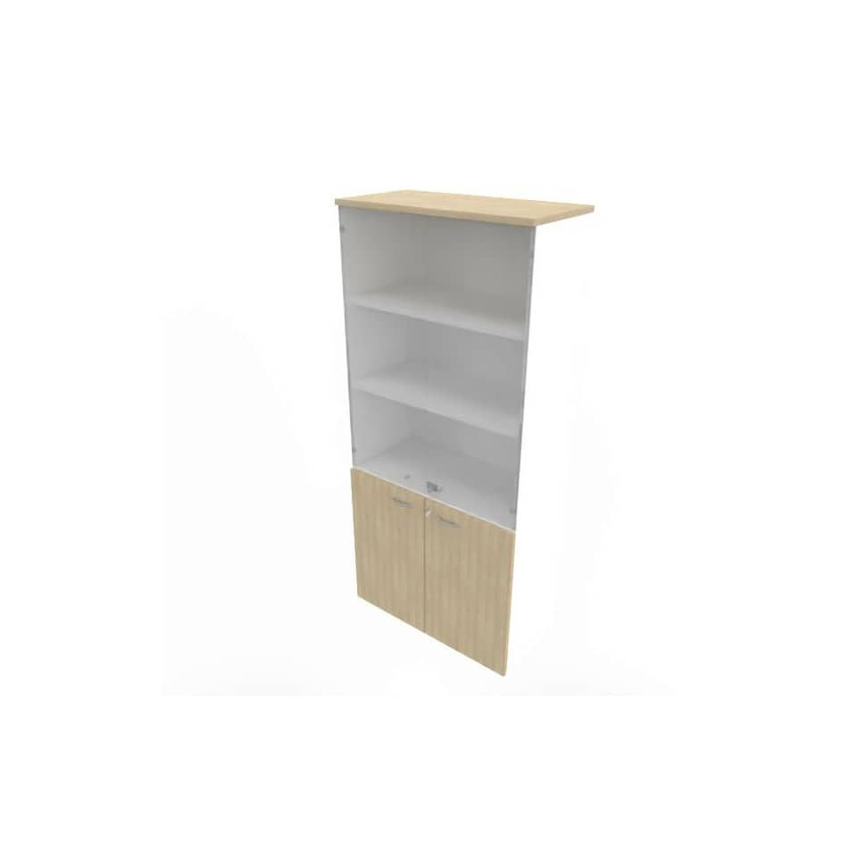 Armadio alto con ante basse Rovere e alte in vetro scocca Bianca 90x45xh.200 cm Practika – ECE490V-RK-BA-GE