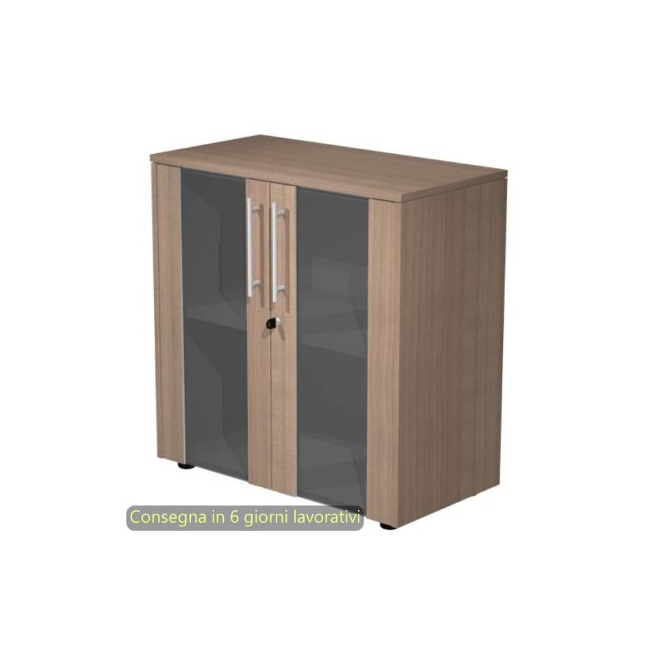 Armadio basso con ante vetro-melaminico con serratura 82,8x43xh.81,4 cm Flora Artexport Noce arabis – 930-68/K