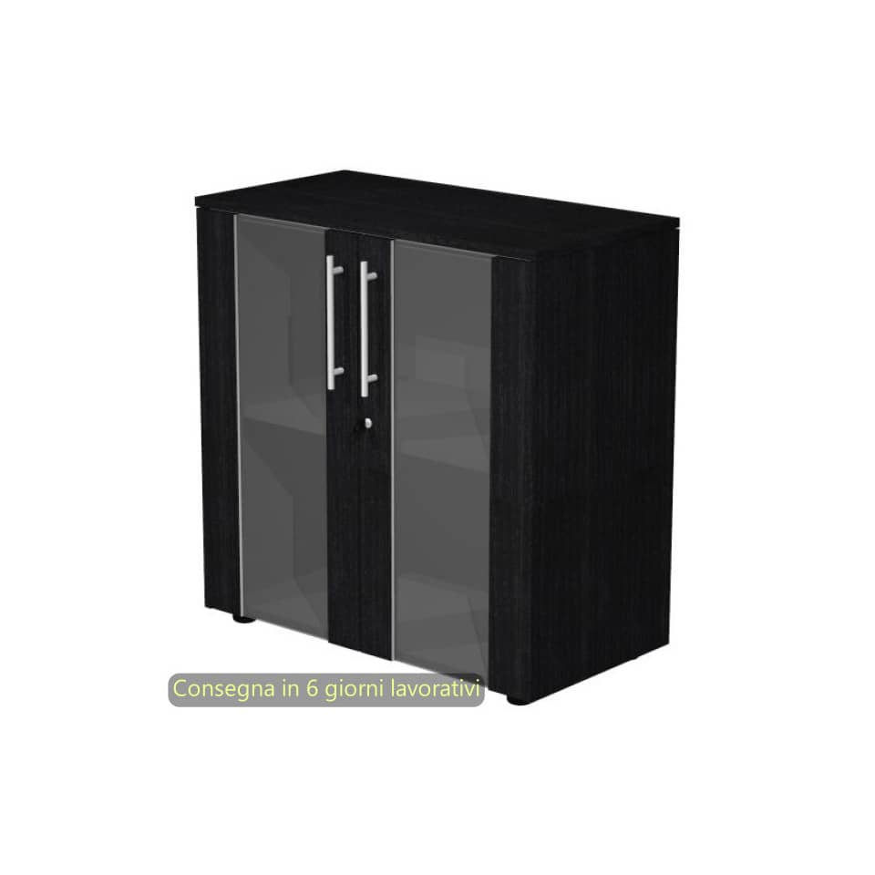 Armadio basso con ante vetro-melaminico con serratura 82,8x43xh.81,4 cm Flora Artexport Nero venato frassino