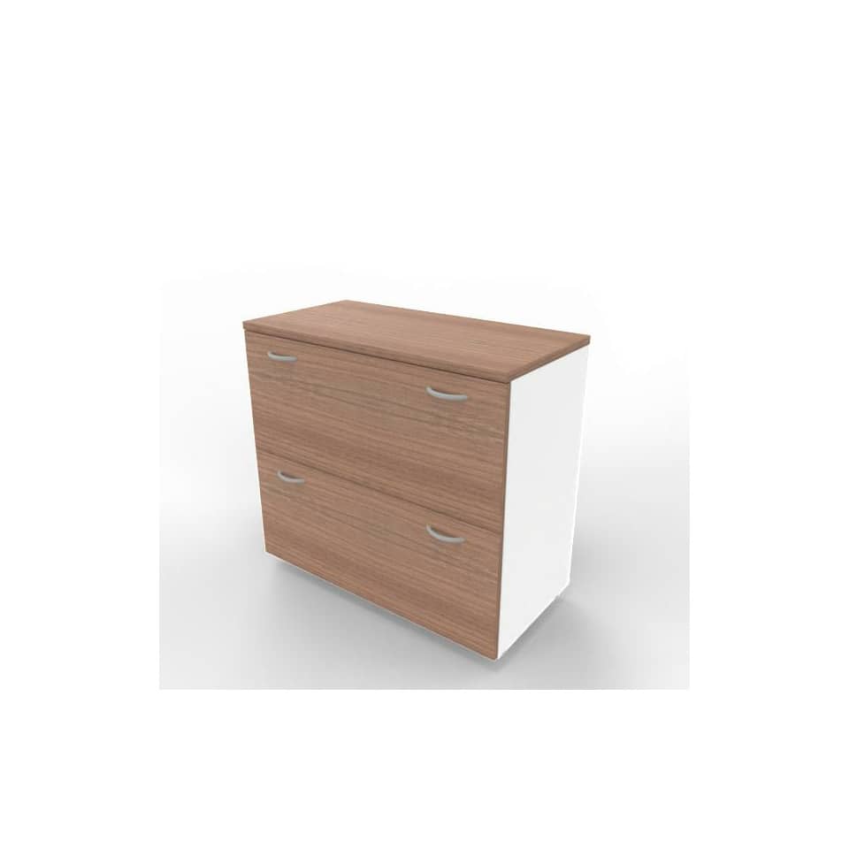 Armadio basso Noce canaletto con scocca Bianca 90x45xh.81,5 cm con due classificatori estraibili Practika