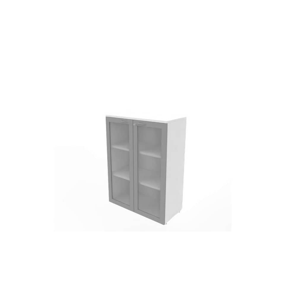 Armadio medio ante vetro telaio MDF – top Bianco scocca Bianca 90x45xh.123,2 cm Practika Quadrifoglio – ECEM90T-BA-BA-V3