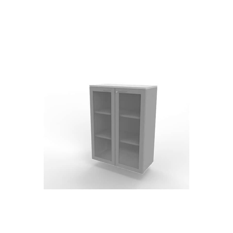 Armadio medio ante vetro telaio MDF - top Grigio scocca Argento 90x45xh.123,2 cm Practika Quadrifoglio - ECEM90T-GR-AA-V3