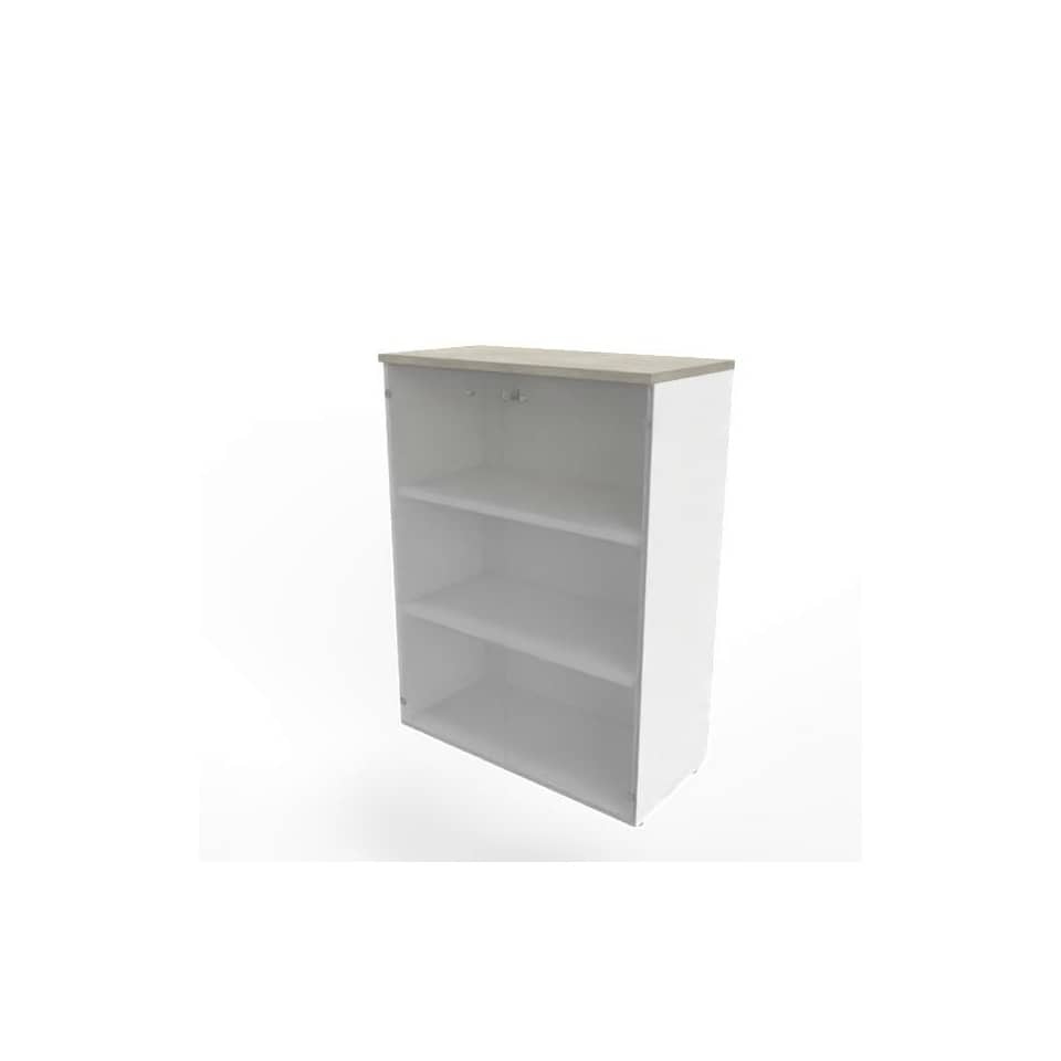Armadio medio con ante vetro fumè, top cemento scocca Bianca 90x45xh.123,2 cm Practika Quadrifoglio - ECEM90V-CL-BA-GE
