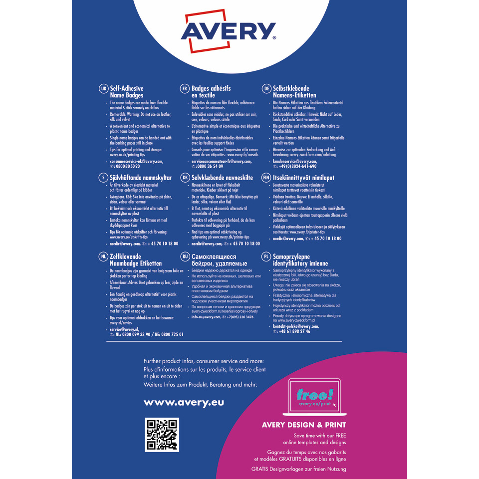 Aderiscono all’abito senza clip o spille. Ideali per identificare i partecipanti a meeting, eventi e seminari, in modo pratico e veloce. Stampabili o scrivibili a mano. Aderiscono perfettamente agli abiti, una volta rimossi non lasciano residui di colla.