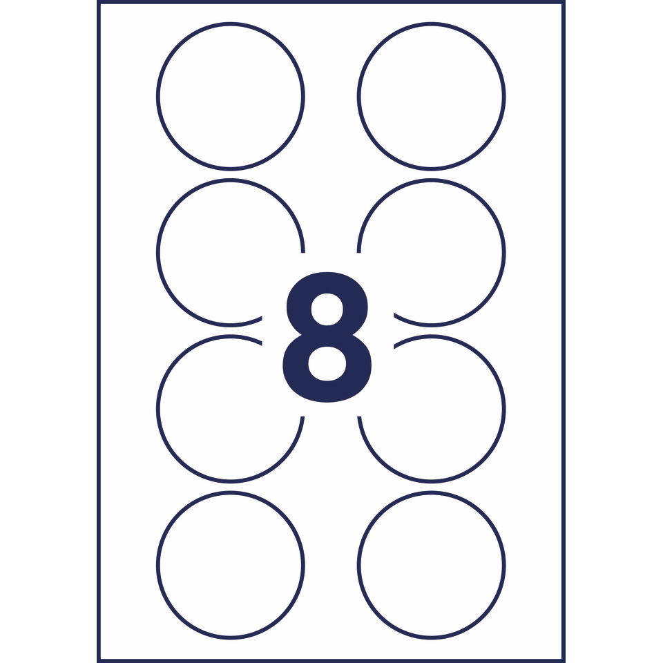 Badge adesivi per tessuti rotondi Avery Ø65 mm – Bianco – 8 etichette per foglio – stampanti Ink-jet – J4881-20 (conf.20 fogli)