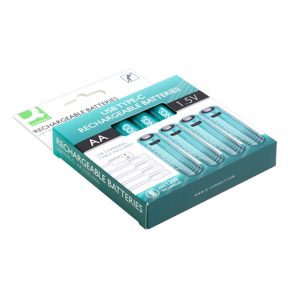 Batterie ricaricabili Stilo AA Q-Connect con cavo USB-C – 1400 mAh – 1,5 V – KF14129 (conf.4)