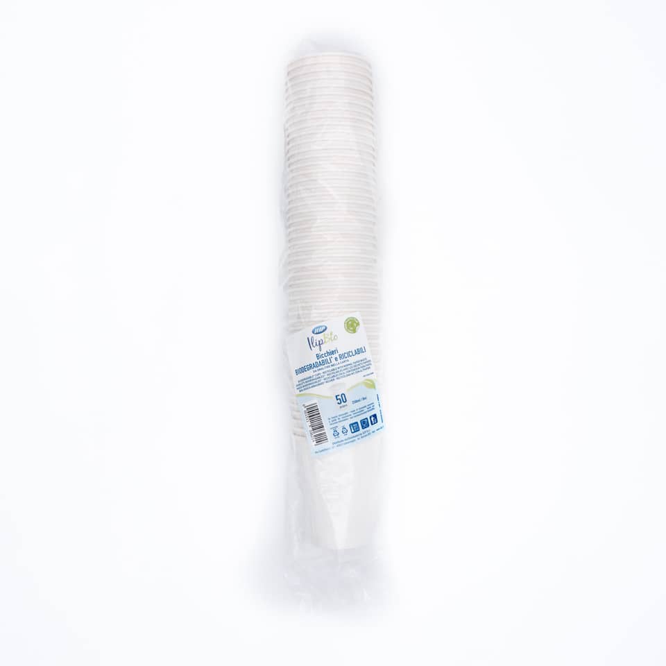 Bicchieri Bianchi Ilip Bio in carta - 250 cc - h.9,52 cm - Øsuperiore 8 cm - 61512 (conf.50)