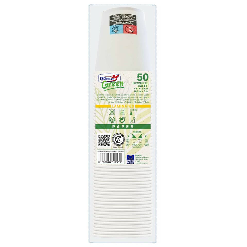 Bicchieri Dopla Green in carta marcati – bianco 100 ml – 42158 (conf.50)