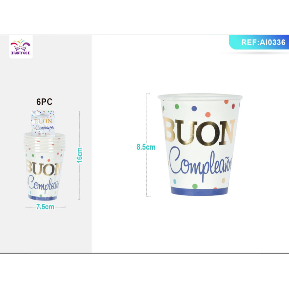 Bicchieri di carta Party Go Buon Compleanno pois colorati 27 cl – AI0336 (conf.6)