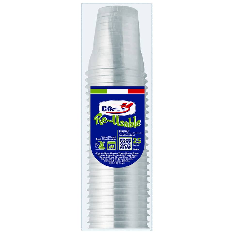 In conclusione, i Bicchieri in PS Diamant trasparente Dopla Reusable 600 ml rappresentano una soluzione versatile, pratica ed ecologica per servire bevande in qualsiasi occasione. La loro resistenza, riutilizzabilità e trasparenza li rendono un prodotto di alta qualità, ideale sia per l'uso domestico che professionale. Questa soluzione, grazie alla sua economicità, rappresenta un investimento intelligente per chi è attento all'ambiente e desidera un prodotto duraturo nel tempo.