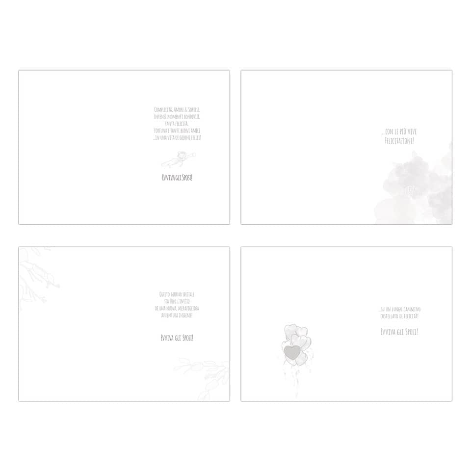 Biglietti augurali matrimonio Biembi. Formato 12x18 cm. Fustellati oro. Confezione da 4 pezzi assortiti.