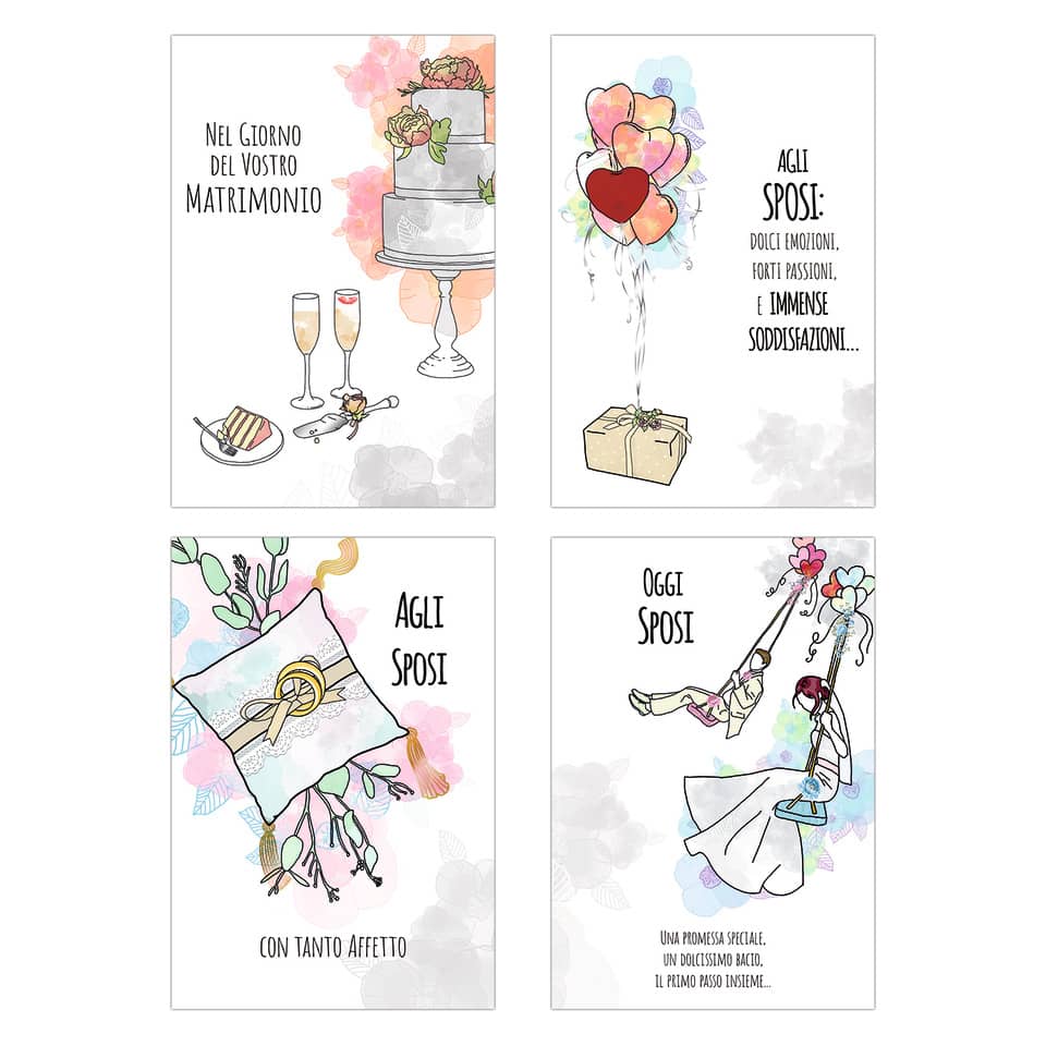 Biglietti augurali Matrimonio Biembi 12×18 cm fustellati Oro – Assortiti – BXBDKTC04 (conf.4)