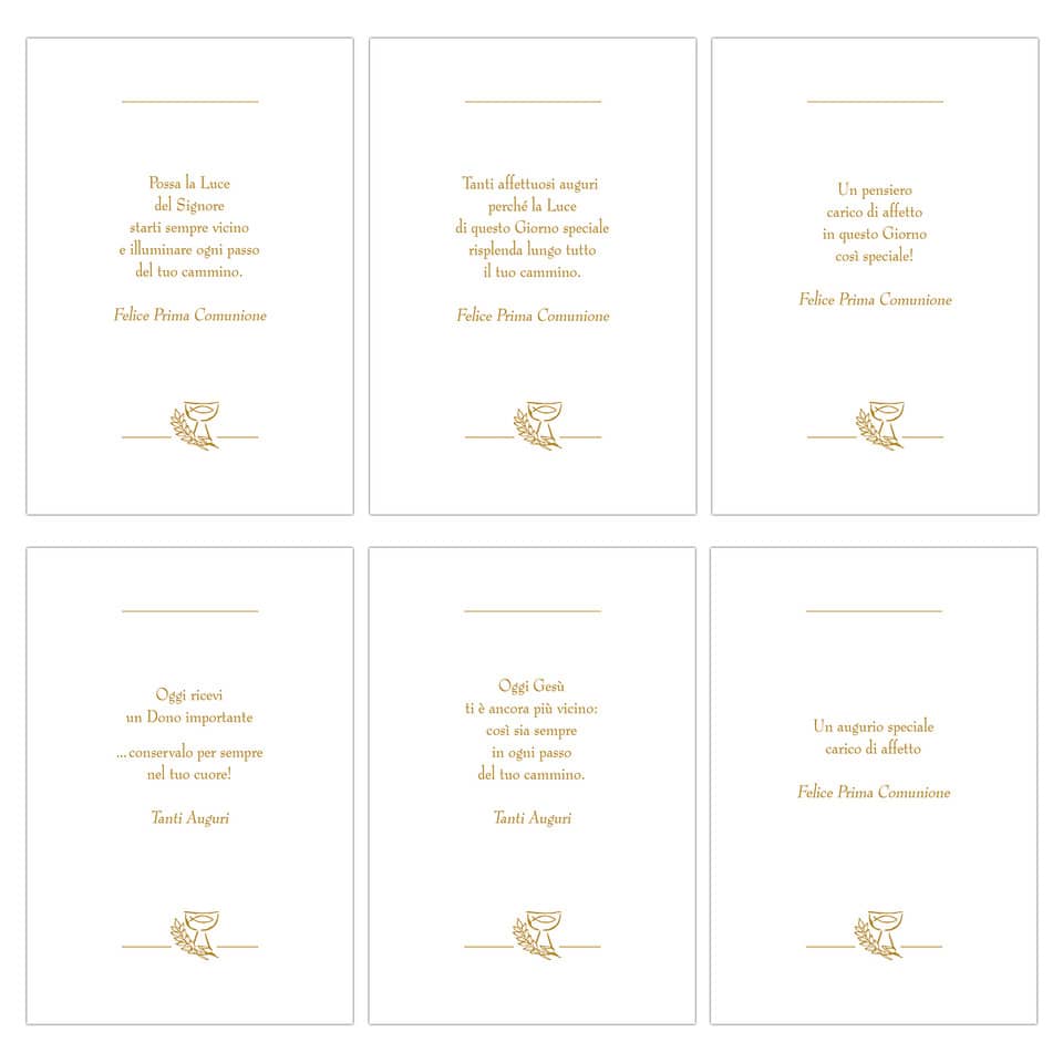 Biglietti augurali Bimbi Prima Comunione. Formato 12x18 cm. Dettagli color oro. Confezione da 6 pezzi.