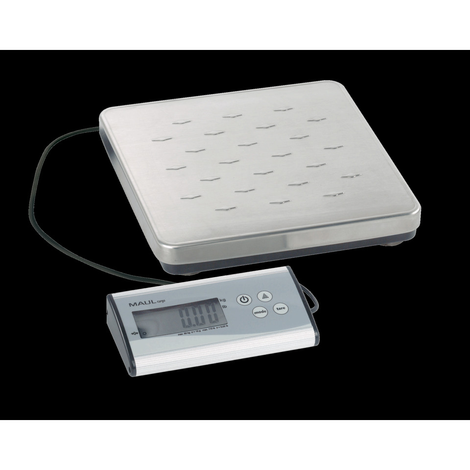 Bilancia pesapacchi Maulcargo con una portata massima di 50 Kg. Ideale per pesare colli e merci pesanti. Include: alimentatore (100-240 V/9V, lunghezza cavo 1,5 m) e una pila da 9 volt. Robusta: piattaforma di carico in acciaio inox con manopole antiscivolo così da essere protettiva e facile da pulire. Funzione di conteggio intelligente: è possibile determinare il numero di pezzi dello stesso peso. Design particolarmente piatto. Garantisce una migliore lettura anche con grandi pacchi grazie al pannello di controllo separato, inclinato per una facile lettura. Stabile: alloggiamento in acciaio, laccato. Posizionamento libero del pannello di controllo sul tavolo o sulla parete. Protetta: design chiuso del pannello di controllo in modo tale da evitare l'ingresso di polvere. Pratico: Spegnimento automatico quando alimentata a pila. Azzeramento automatico. Tasto di comando unico per le funzioni On-Ofogli. Calibrazione utente possibile, funzione tara. Funzione di conteggio: mettere il peso di riferimento, salvare, mettere tutte le parti dello stesso peso e leggere la quantità totale. Flessibile: commutabile Kg/lb. Lunghezza cavo bilancia - unità di controllo: 2,20 m. Unità di controllo in alluminio di dimensioni: 18,1 x 9,1 x 3,8 cm. Grande piattaforma di carico: 27,3 x 27,3 cm. Altezza ridotta di 4,8 cm. Obblighi informativi secondo il regolamento GPSR sulla sicurezza dei prodotti.