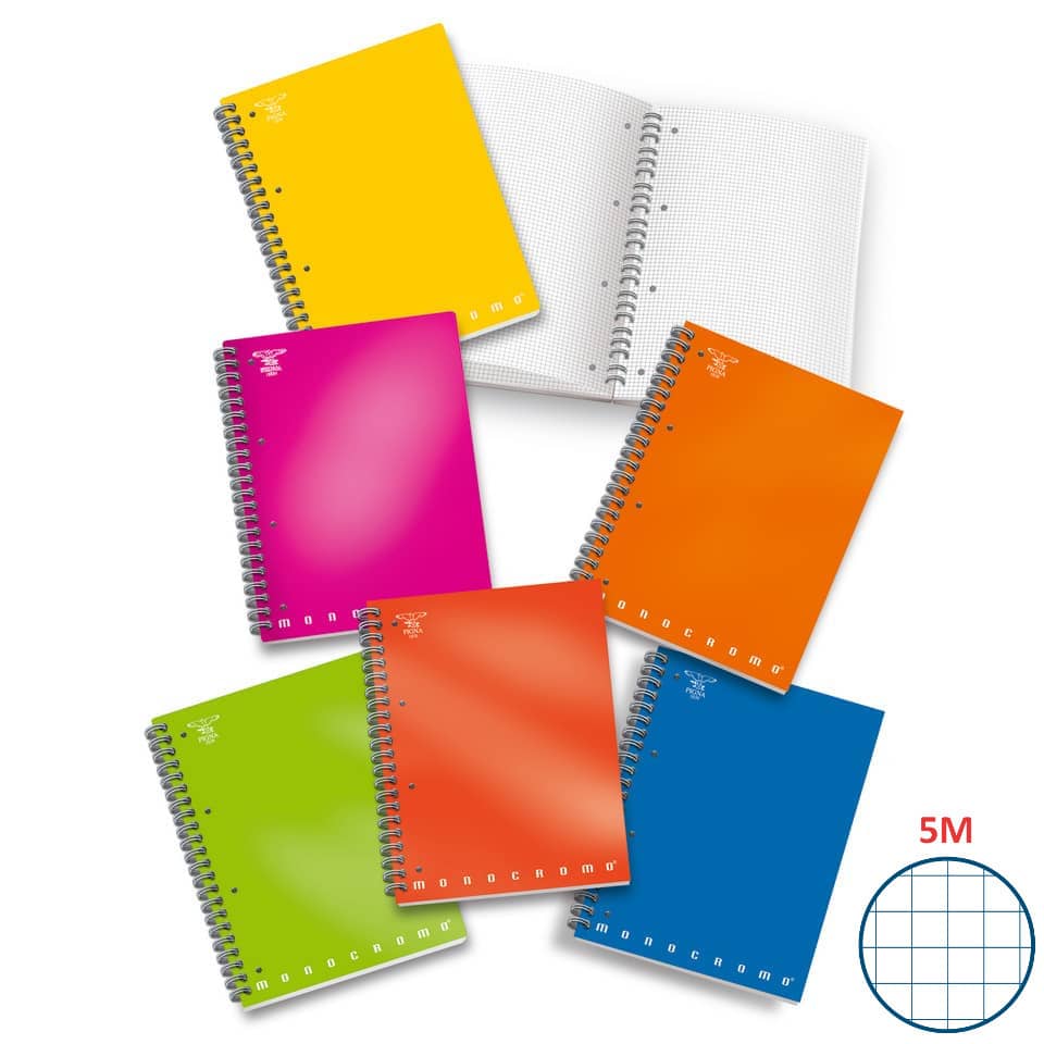 Blocco spiralato A4 100 fogli Pigna Monocromo a 4 fori – quadretti 5mm – assortiti 02000035M