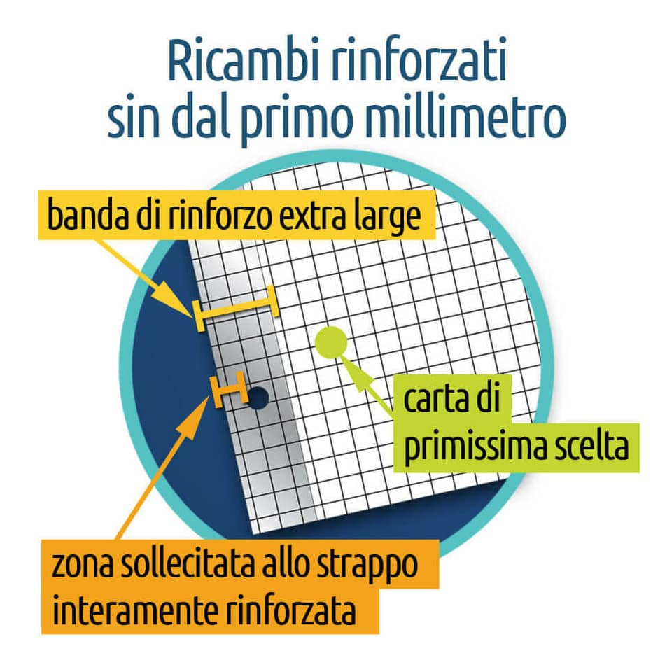 Blocco 40 fogli A4 collato lato lungo – forati e rinforzati – 80g/m² Blasetti Book&Block a quadretti Q con margine – 7741