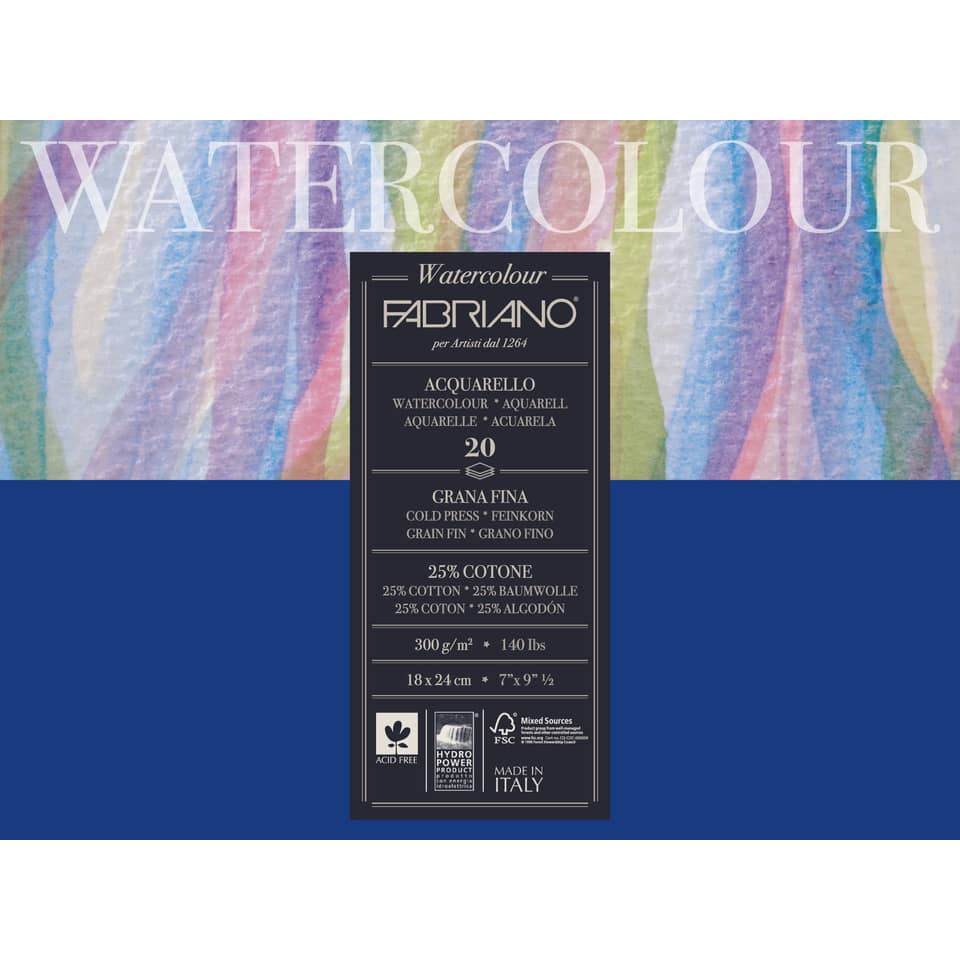 Blocco collato Fabriano Watercolour grana fine 20 fogli 18×24 cm – 300g/m² – 73611824