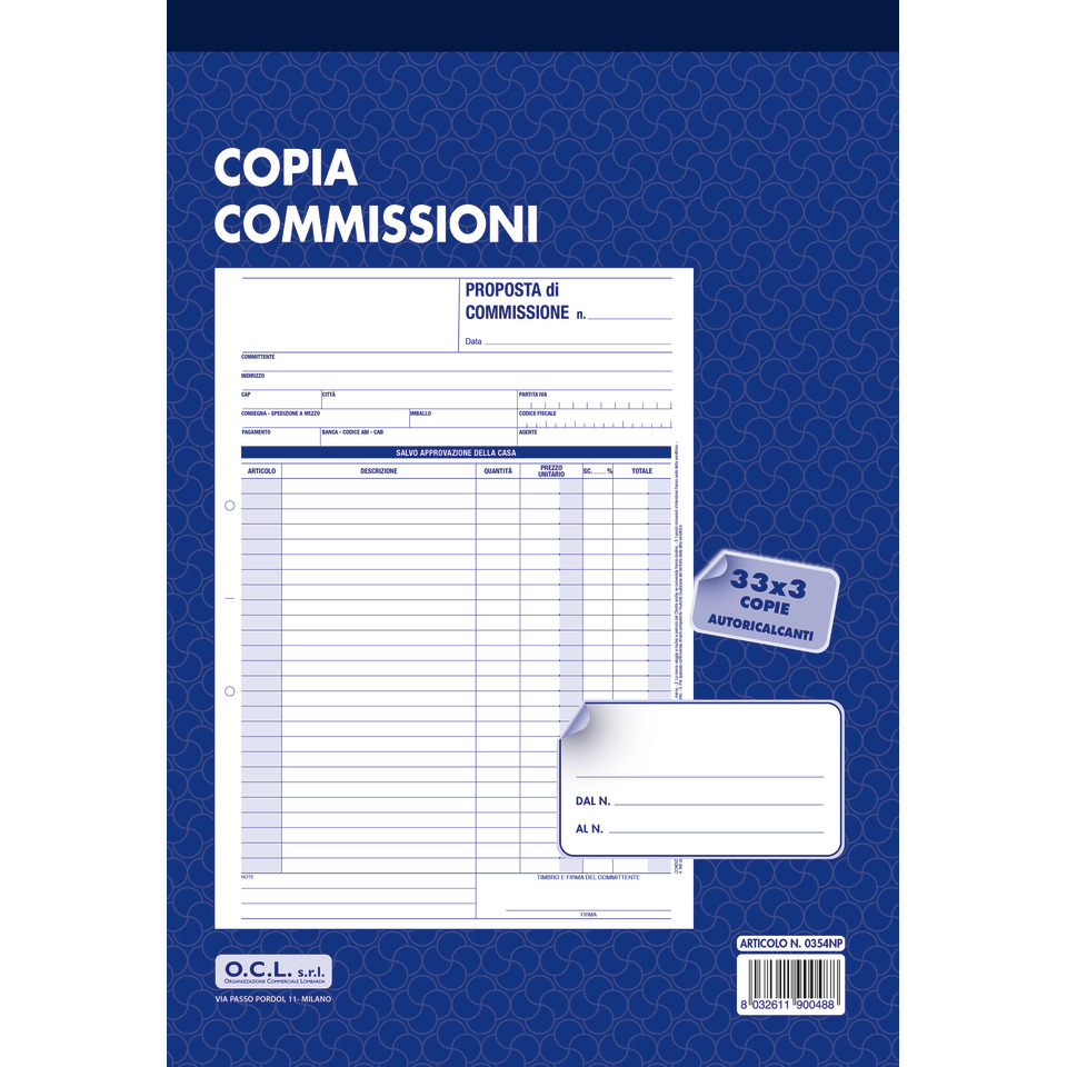 Blocco copia commissioni O.C.L. 21×30,5 cm 33×3 copie – 0354N