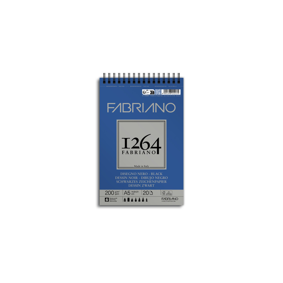 Blocco da disegno spiralato 1264 200g/m² – 40 fogli neri A5 – 19100651