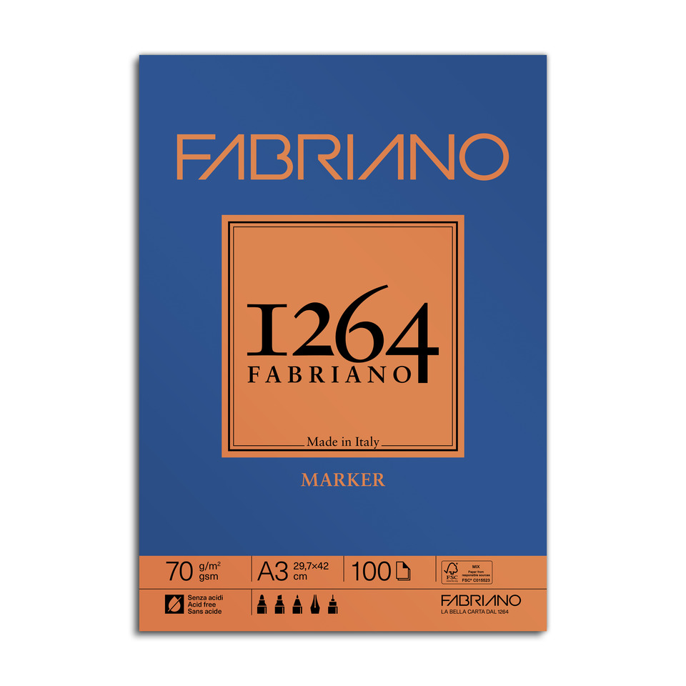 Blocco di carta collato Fabriano 1264 Marker 70g/m² A3 – 19100641
