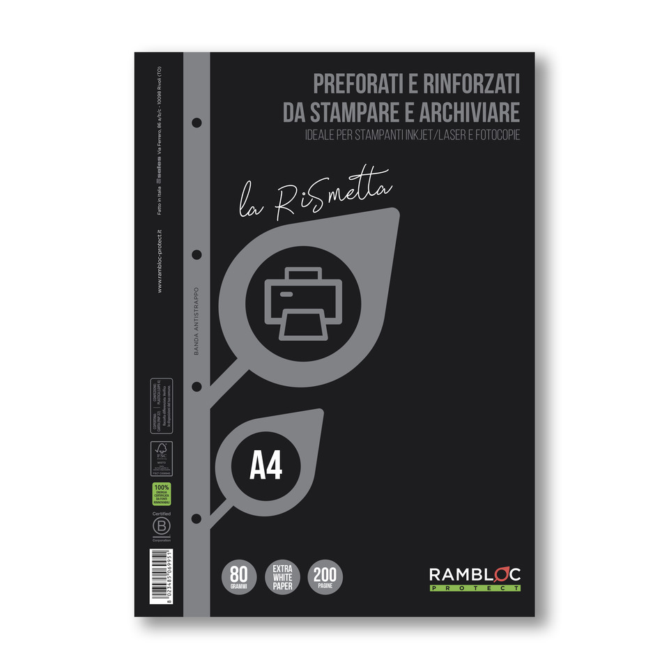 Blocco fogli perforati e rinforzati Rambloc LA RISMETTA 100 fogli bianchi A4 – 80g/m² – 90506995