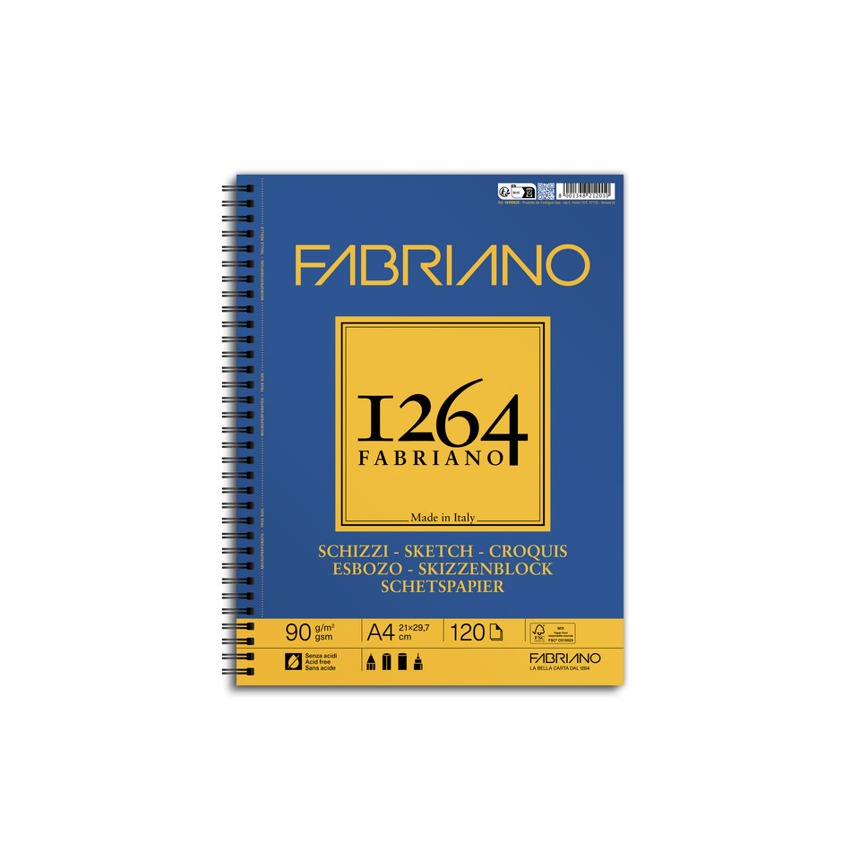Blocco spiralato Fabriano 1264 schizzi 90g/m² 120 fogli A4 – spirale lato lungo – 19100635