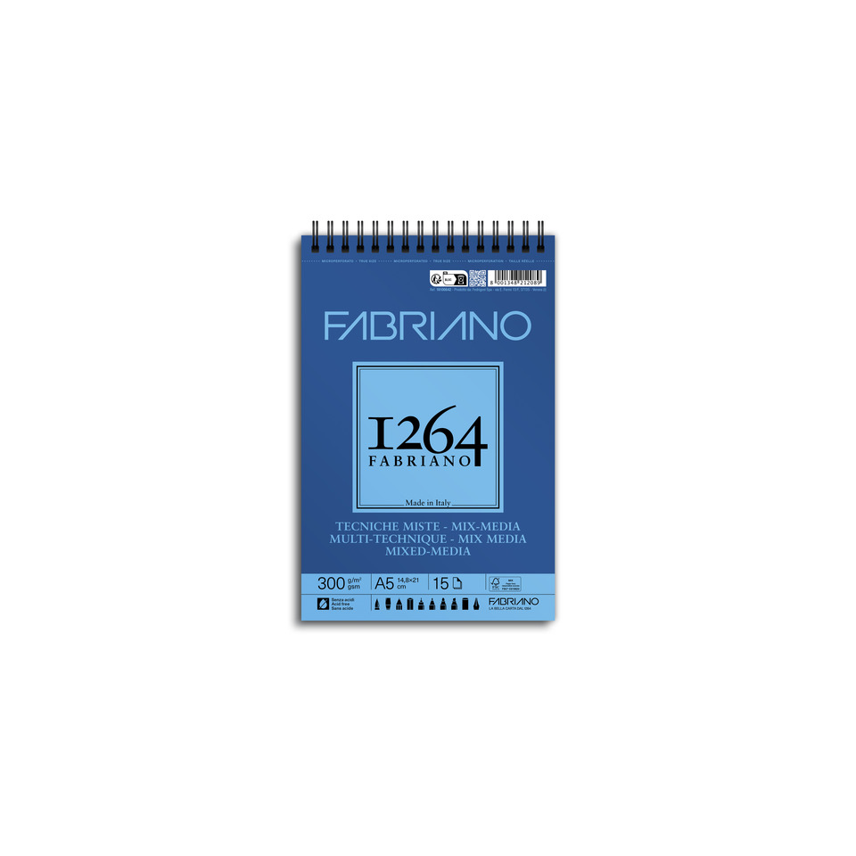Blocco spiralato tecniche miste Fabriano 1264 - 300g/m² A5 - 15 fogli 19100642