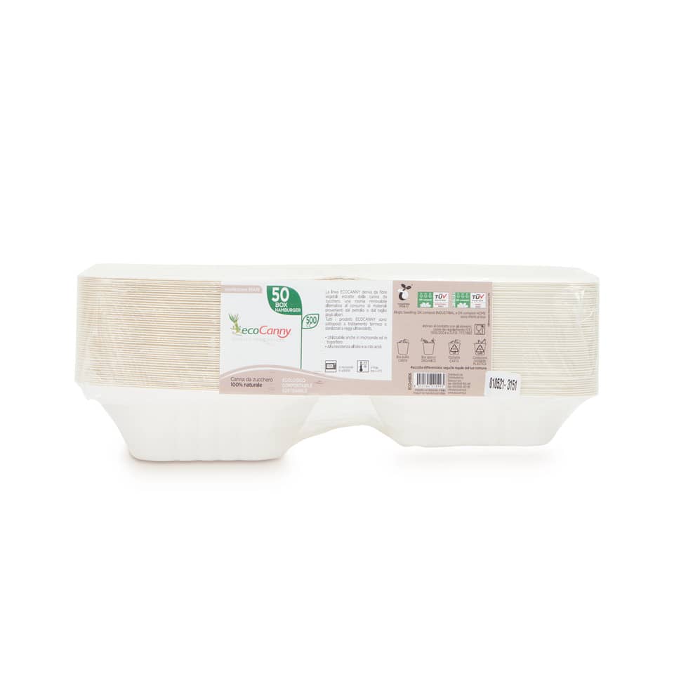 Box hamburger bio-compostabili ecoCanny Take Away Bianco 150x150x80 mm - ECO'HB06 (conf.50)