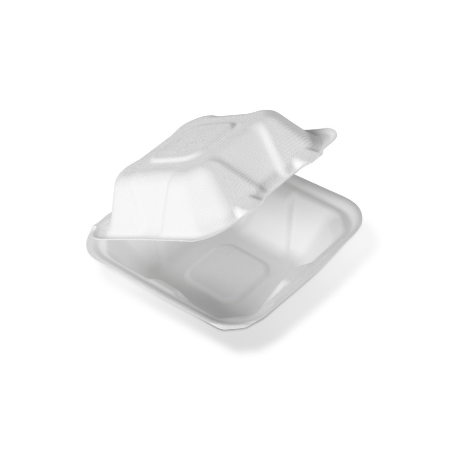 Box Take Away 500ml in canna da zucchero. Prodotto realizzato con fibre vegetali estratte dalla canna da zucchero (bagassa), una risorsa rinnovabile che rappresenta un'alternativa sostenibile ai materiali derivati dal petrolio o dal taglio degli alberi. Completamente biodegradabile e compostabile secondo la norma EN 13432. Certificato per compostaggio domestico e industriale (OK compost Home e OK compost Industrial - Certificato N. TUV S2516). Idoneo al contatto con gli alimenti, in conformità al Regolamento (CE) 935/2004 e al D.P.R. 777/1982. Certificato dall'ente Food Contact Centre: Rapporto di prova N° FC250823.01. Alta resistenza al peso, ai liquidi, ai cibi grassi e salati. Utilizzo in microonde: 2' a 700W / in frigorifero: fino a -18°C. Resistenza a liquidi caldi: olio 55°C / acqua 100°C. Confezione: LDPE (04) smaltimento plastica. Etichetta: Carta (PAP) smaltimento carta. Piatto: Canna da zucchero (bagassa). Biodegradabile e compostabile smaltimento organico. Confezione da 50 box. Dimensioni: 15x15x7 cm.