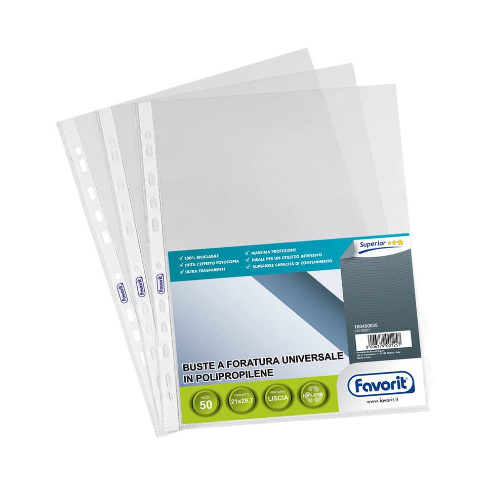 Buste a foratura universale Liscio Super Clear Favorit - Superior 21x29,7 cm (conf.50)