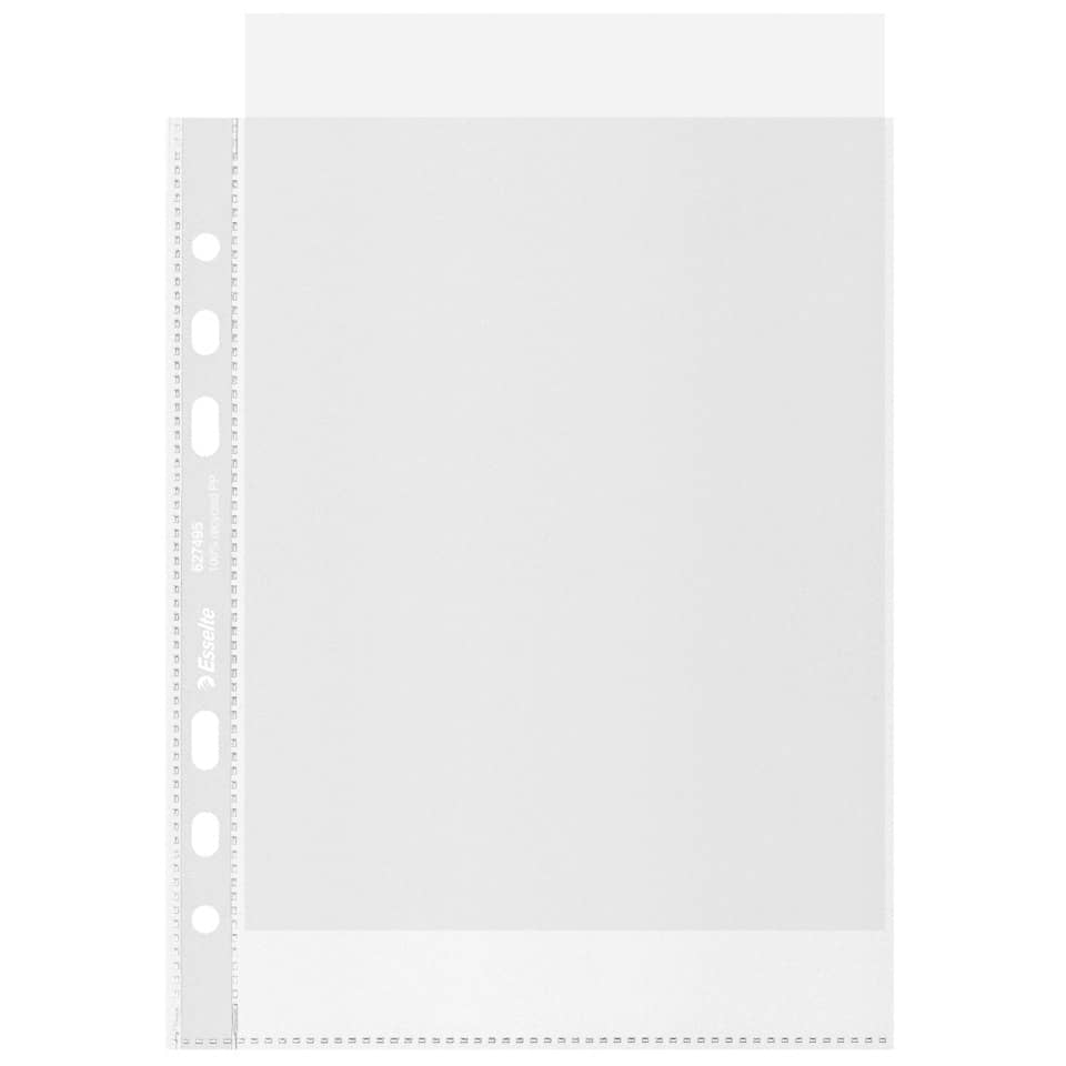 La qualità e la durevolezza del materiale consentono di riutilizzarle più volte Banda rinforzata con perforazione universale a 6 fori per l'uso in qualsiasi raccoglitore ad anelli o con meccanismo a leva, il rinforzo è realizzato con una pellicola riciclata trasparente. Formato A5 con apertura in alto, ideale per l'uso in ufficio, a casa e a scuola. Superficie antiriflesso, ottima qualità.