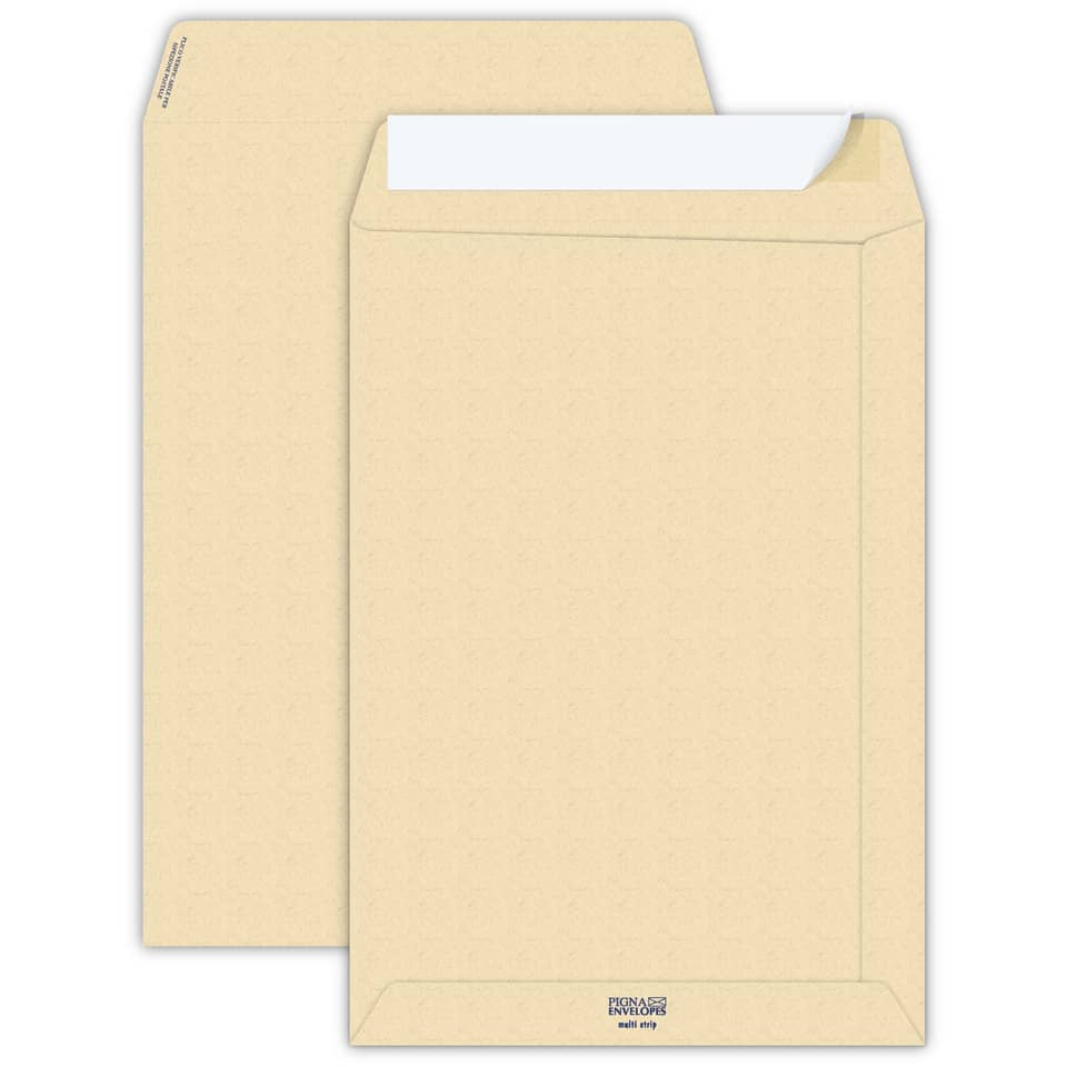 Buste a sacco avana con lembo di chiusura autoadesivo con strip.